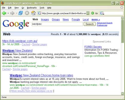 For example, instead of typing in the entire URL for the Westpac personal banking online service, a customer may find that it is faster to type “westpac” into Google (or a related toolbar search aid) and follow the second link on the page.